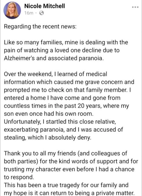Mitchell is a lawyer – who publicly contradicted her statements to the police, on Facebook:
