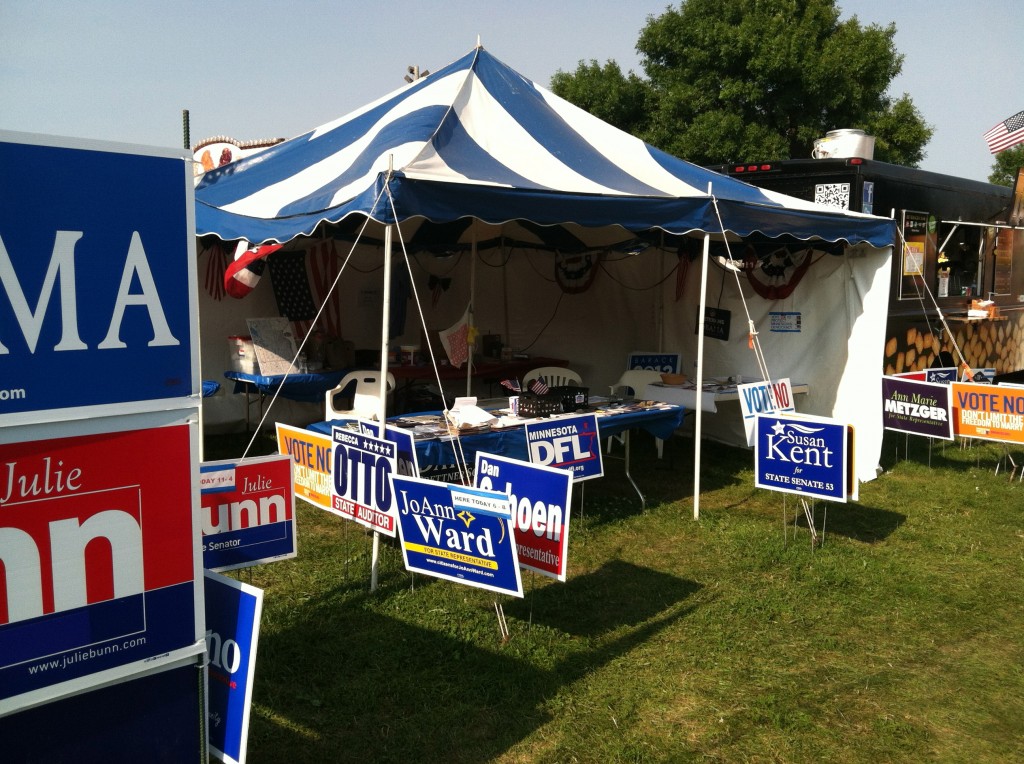 Anyway – Brad and I had a great time at the fair. I always love going to places with actual two-party government. Especially corners that are heavily GOP. Great example; Karin Housley’s booth is kitty corner from the DFL’s.