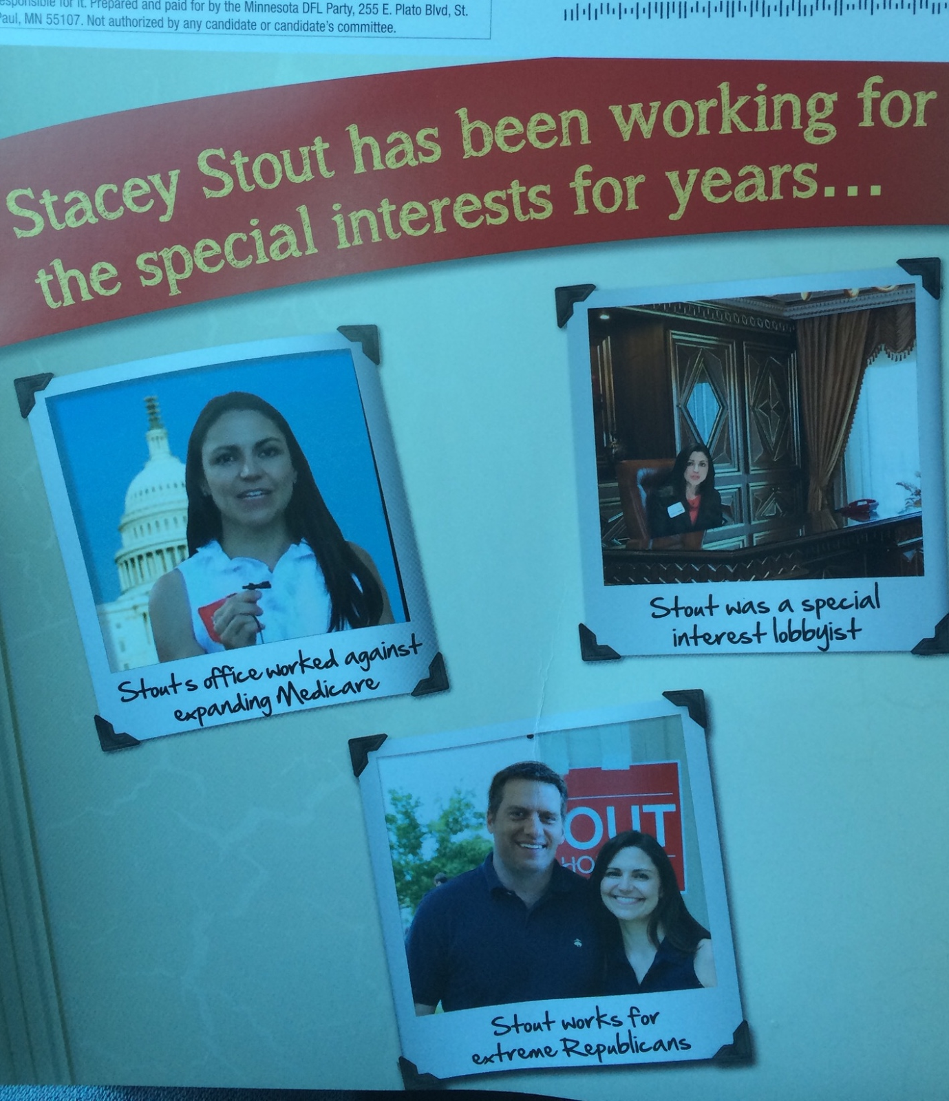 The face of the man in the bottom photograph (captioned “Stout works for extreme Republicans) belongs to the state House Minority Leader Kurt Daudt.