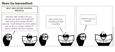 Joe “Learned Foot” Tucci’s “Fleen”, set in a fictional void amidst a larger void, is an ironic commentary on the overly-structured pointillism of most “post-modern” cartoons.