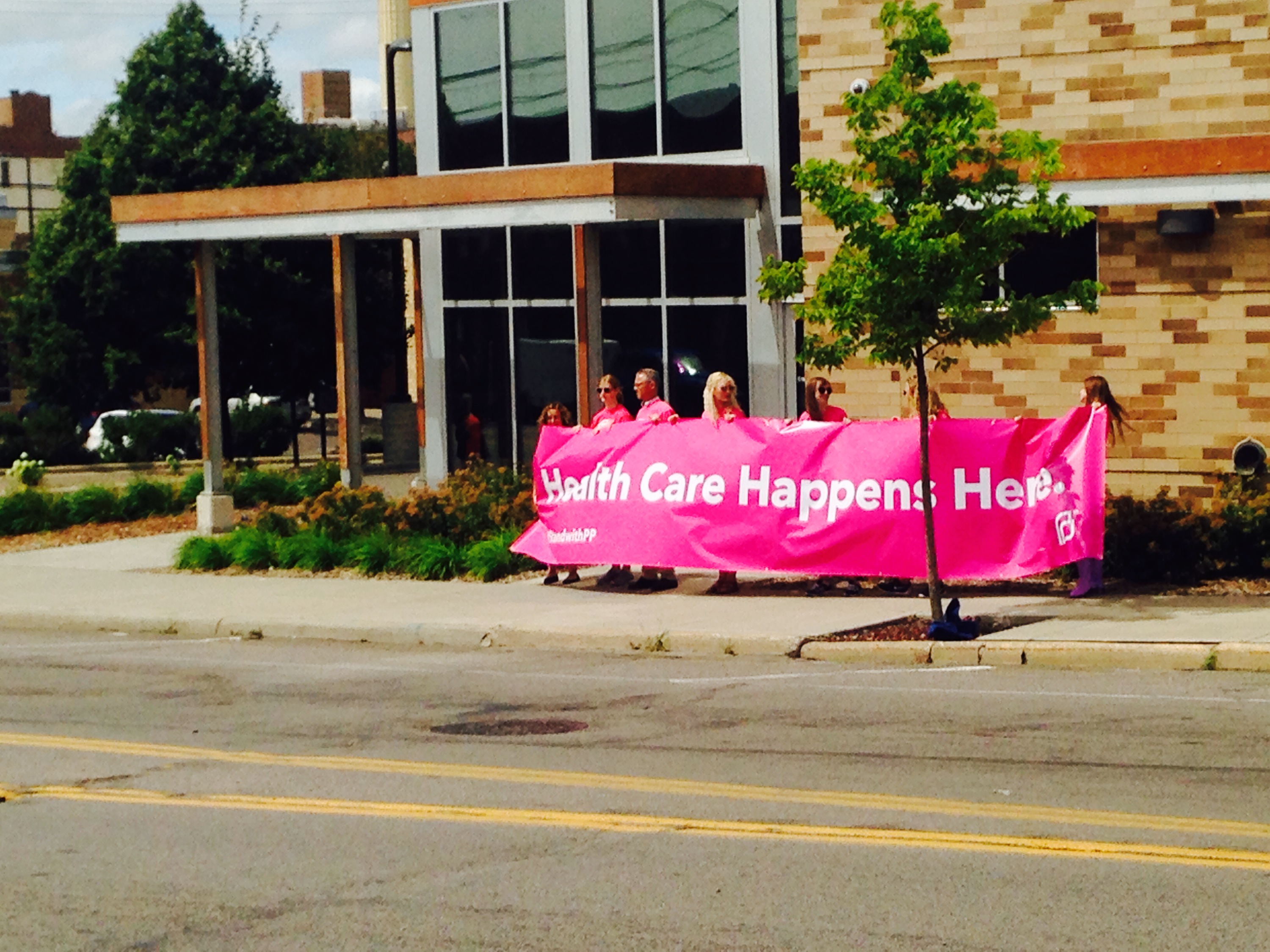 I went – very, very briefly – to the rally at the Planned Parenthood in Saint Paul over the lunch hour yesterday. It was hot and clammy – so humid the air seemed to congeal into little clumps of atmospheric sweat.