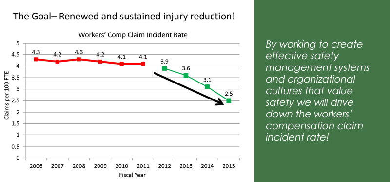 In a comment to “A Bad Idea Whose Time Will Never Come,” Troy linked to a State of Minnesota website about job safety. Their goal is to reduce the number of worker’s comp accidents from 4.3 down to 2.5.