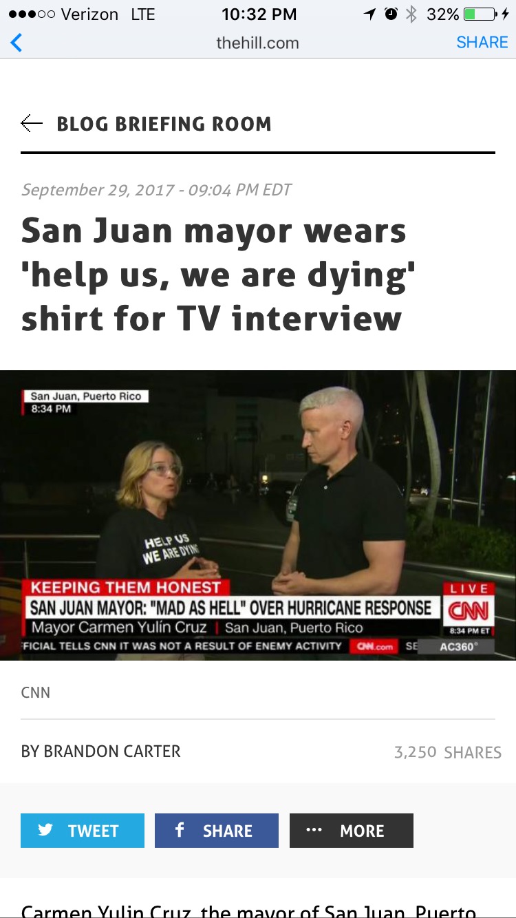 The mayor of San Juan Puerto Rico appeared on CNN wearing a “we are dying here” T-shirt.