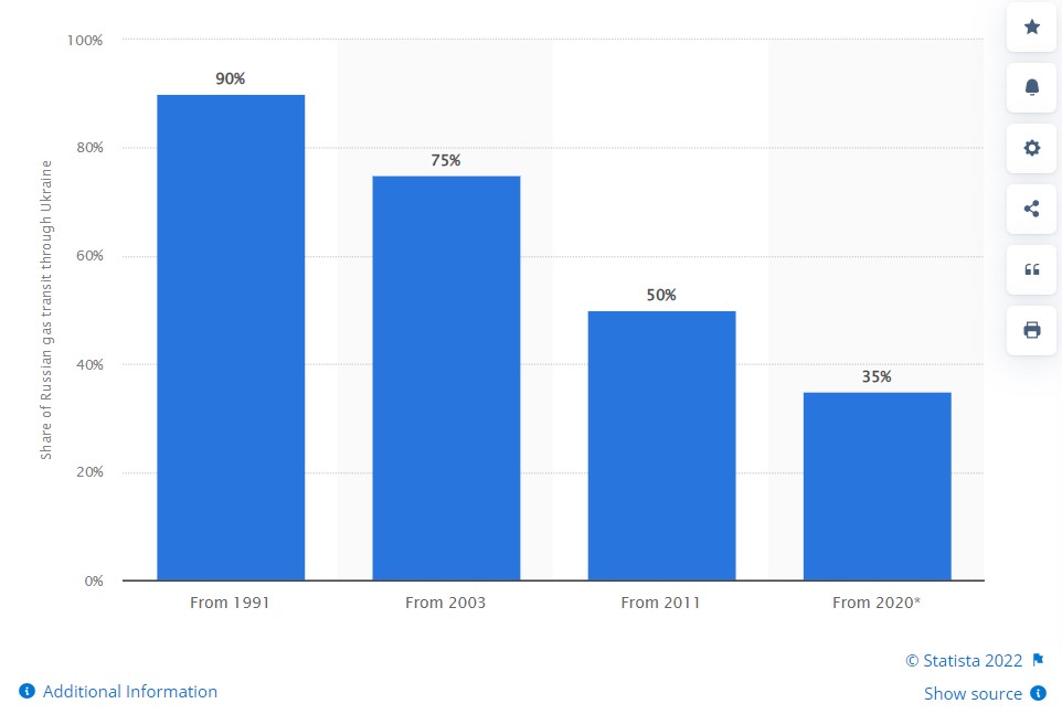 A significant portion of that gas transits through Ukraine. Though the percentage has dropped over time, according to Statista at least a third of Russian imports comes through Ukraine.