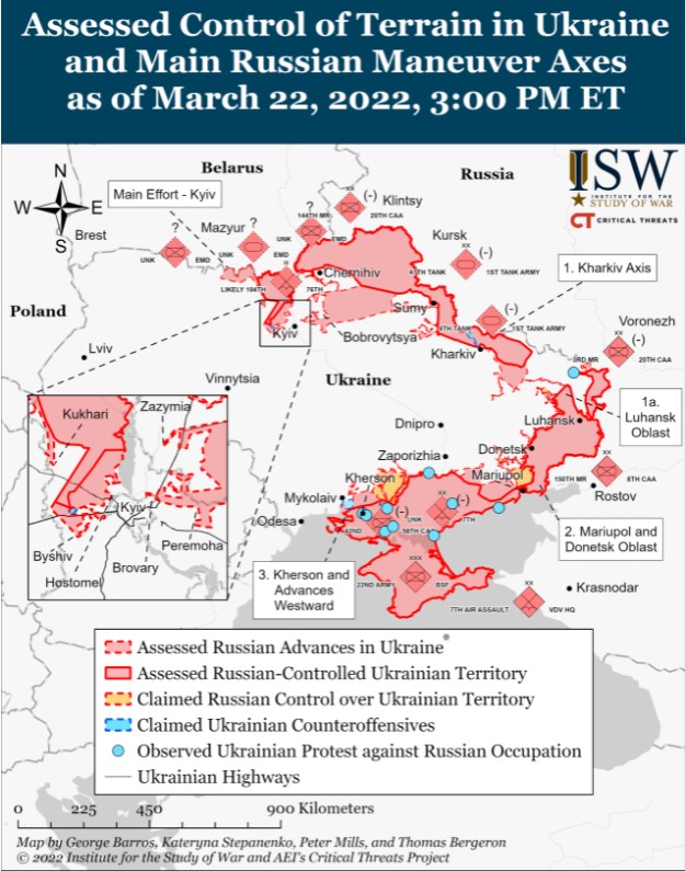 The Institute for the Study of War has one of the best regular updates of the current conflict in Ukraine. Check it out if you’re looking for a good source. Here’s a map courtesy of them that shows where Russia is most active in Ukraine.