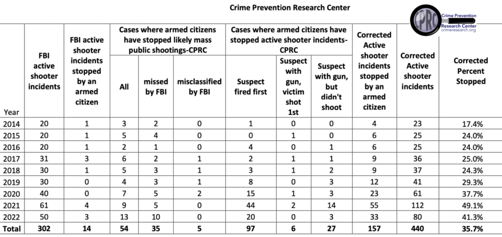 If the CPRC is correct – and it always is – citizens respond effecivelty to, not 4%, but rather to almost 36% of active shooter situatons.