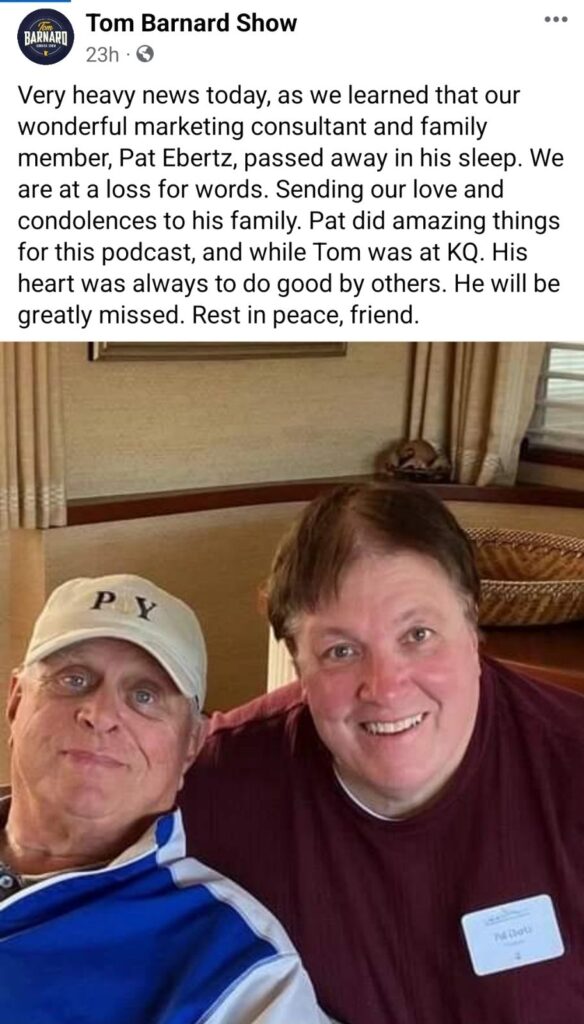 But Pat made the move to the Cities a few months later, latching on at KDWB, where he spent years as a producer and sidekick for Dave Ryan. Being music radio, fashions change and jobs come and go fast – but Pat had a long run at the 101.3. I heard he’d moved to Saint Cloud and was at the Top40 station there, and then recently that he’d latched on with Tom Barnard. We hadn’t talked in decades.
