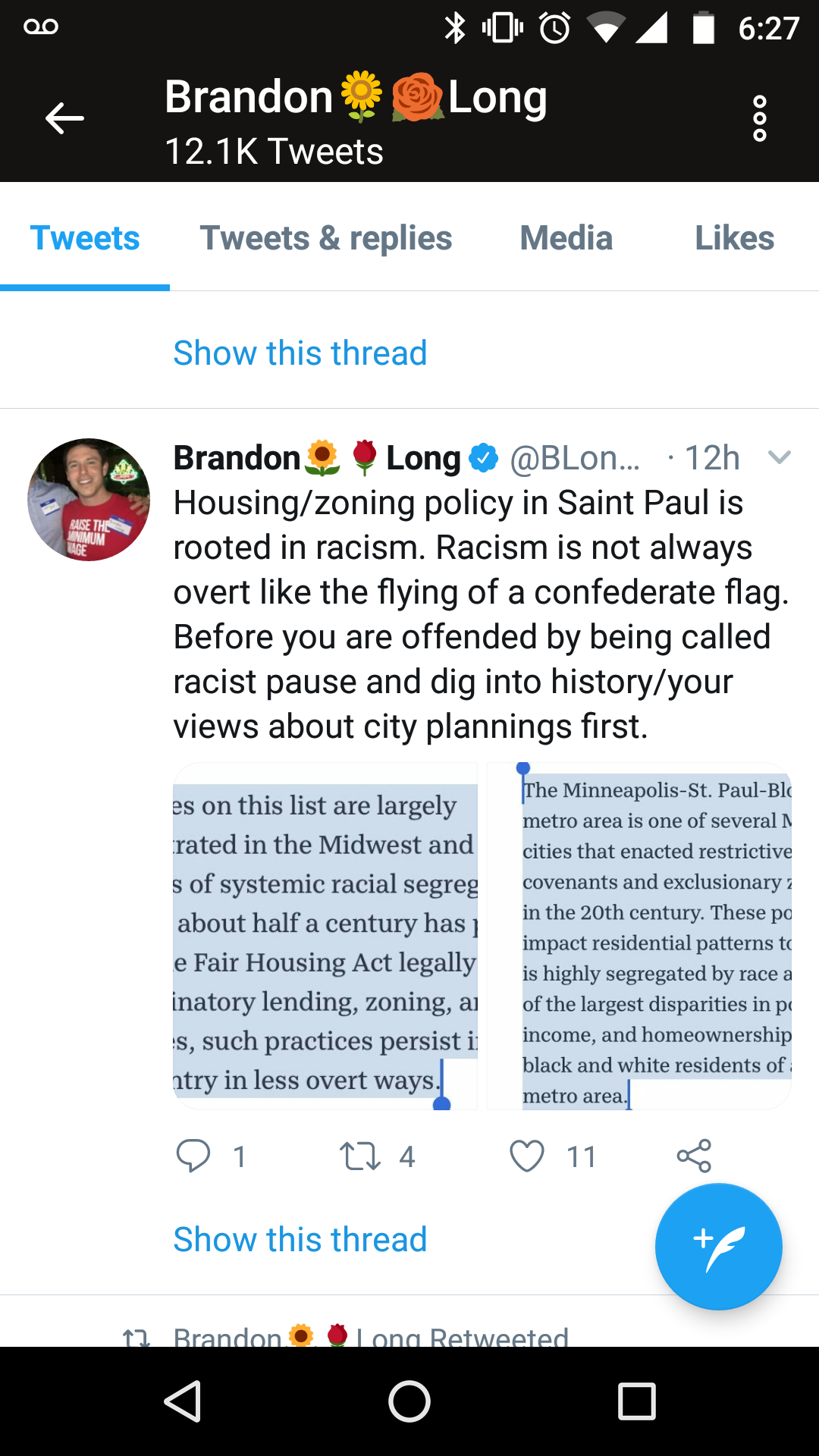 He, and other young progressives, cry about lack of affordability (for some other group of unknown people), while they live in their single family homes in Mac Groveland or Highland Park (as is the case for this director.) Thinking about affordability, I wonder how these young, just out of college people afford their houses in neighborhoods like Mac Groveland or Highland Park. Thinking about racism, I wonder why these young, privileged white people chose those neighborhoods instead of the more transit connected, affordable neighborhoods in the city…